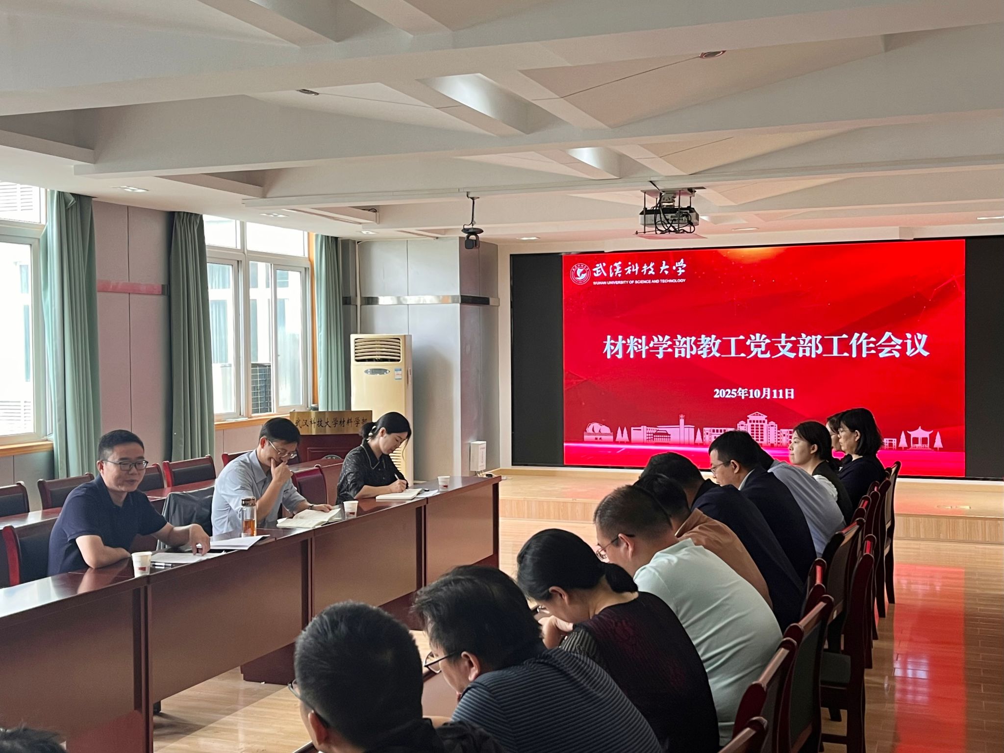 武科大网讯(通讯员 张一诺)10月11日上午,雷火电子竞技平台教工党支部工作会议在青山校区教六楼召开。学部党委书记刘帅主持会议并讲话,学部执行主任李享成出席会议并作工作部署,党委副书记兼纪委书记胡晶晶通报相关典型案例。