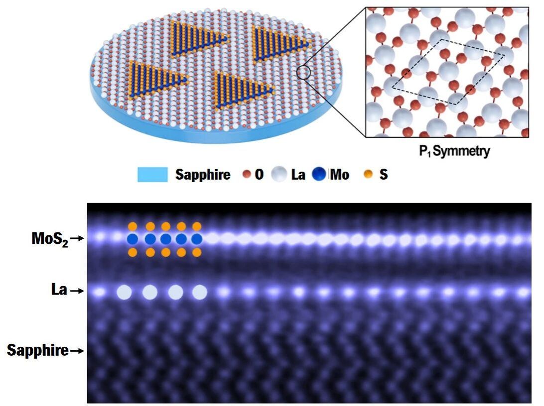 图2 镧修饰的蓝宝石衬底上实现二维半导体单晶外延